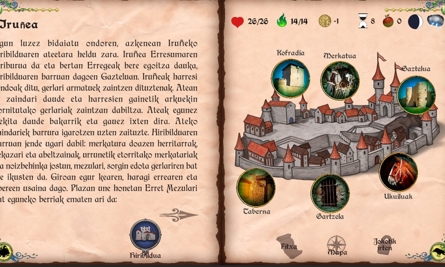 Jokoaren mundua Euskal herri osoan zabaltzen da, Iruñeko erresumaren barne eta haratago. Mapa handi bat eskaintzen du jokoak, 200 leku beino gehiagorekin eta ia beste hainbeste erronkekin. Joko barruan istorio bat garatzen da, bi zatitan banatuta dagoena. Lehenengo zatian pertsonaia heroi bihurtzeko ibilbidea jarraituko du, eta bigarren zatian heroiak euskal erresumaren babesean hainbat abentura biziko ditu.